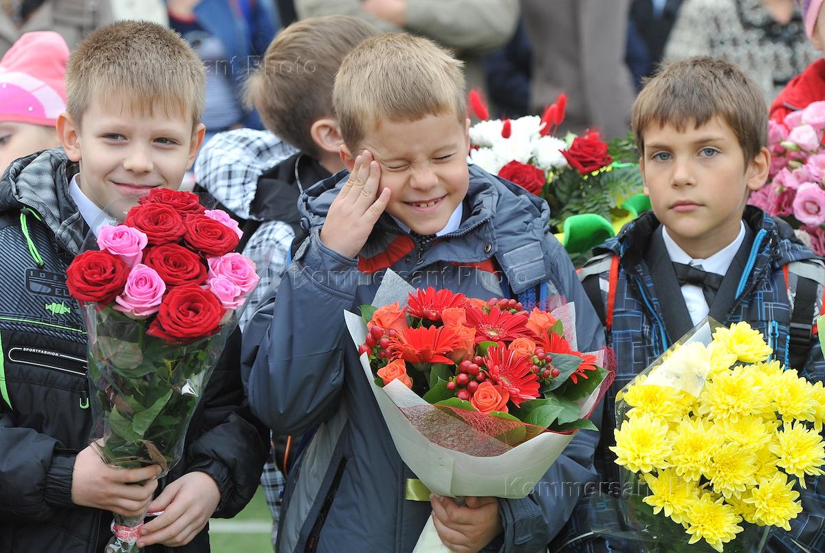 Pupils at solemn ruler devoted to the Day of Knowledge in the opened renovated school number №752. First bell.