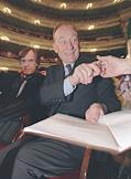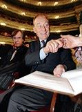 Композитор Родион Щедрин на своем юбилейном творческом вечере. Вечер состоялся на сцене Государственного академического Большого театра (ГАБТ).