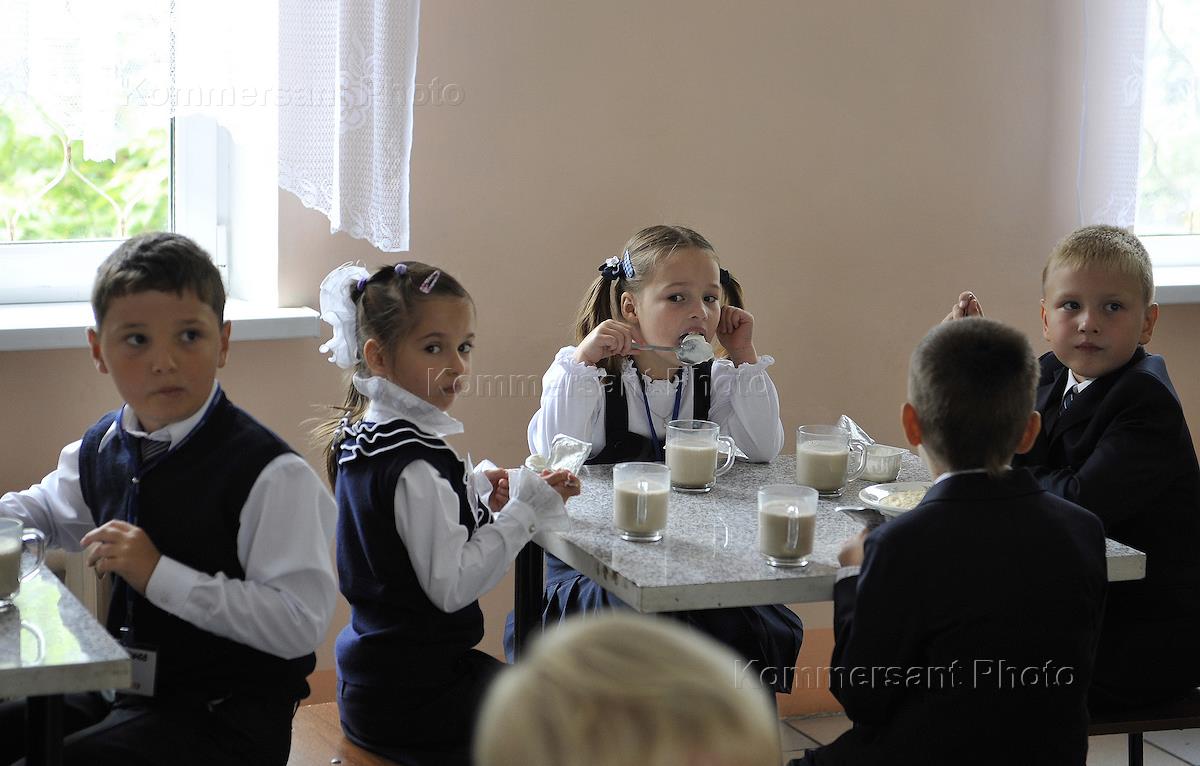 Knowledge Day at school №800. Breakfast in the school cafeteria.
