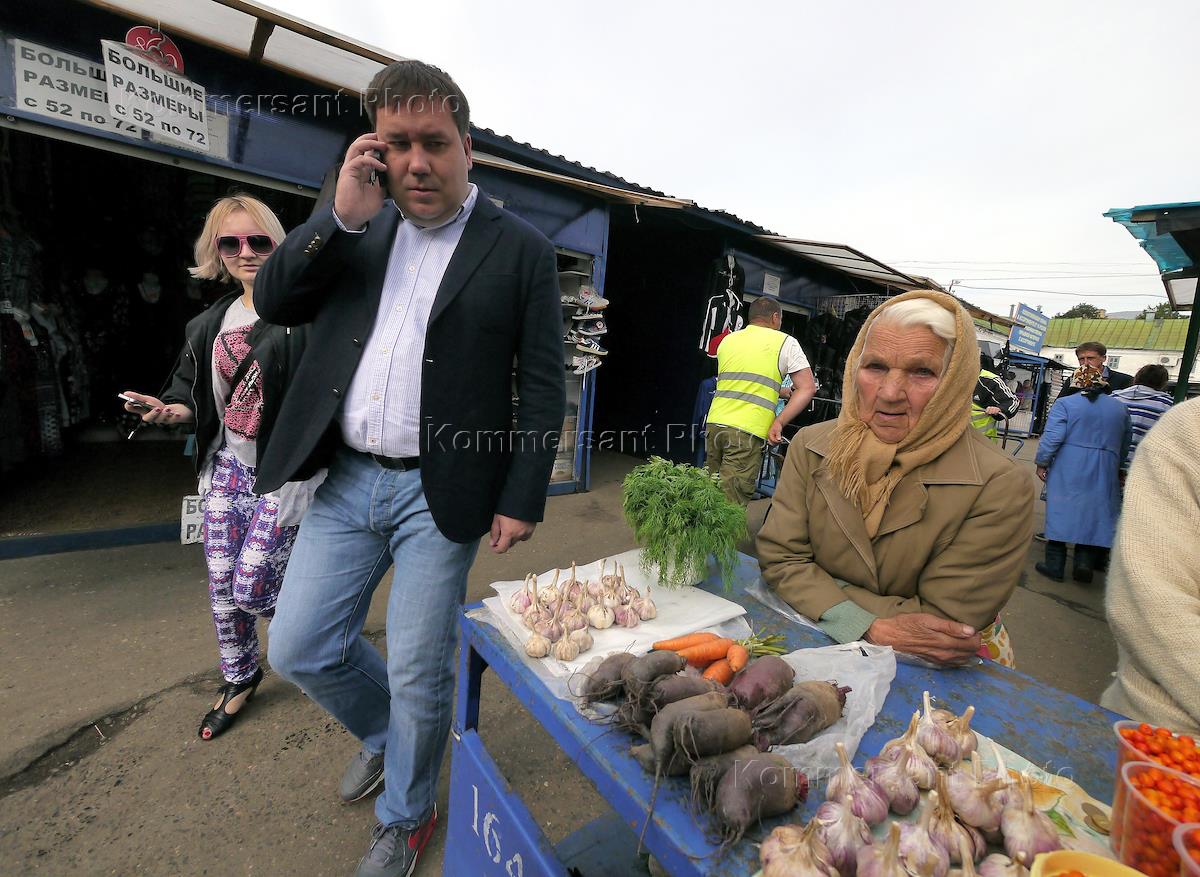 Head of the Kostroma Administration Victor Emetc (second left) on the collective farm market.