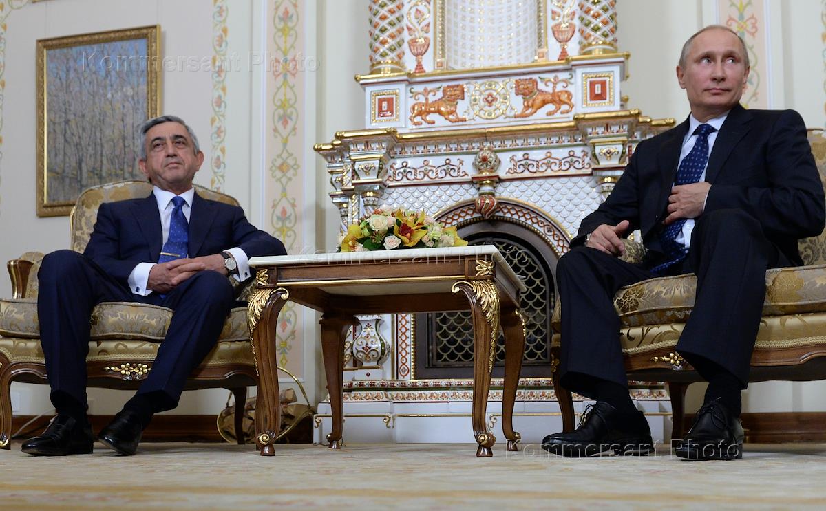 Armenian President Serzh Sargsyan (left) and Russian President Vladimir Putin (right) during an official meeting.