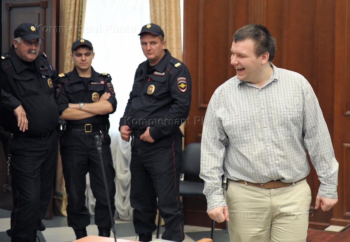 Обвиняемый по делу о массовых беспорядках на Болотной площади 6 мая 2012 года Николай Кавказский во время судебного заседания в Московском городском суде.
