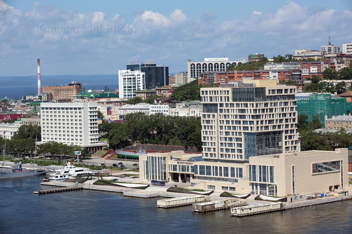 Views of Vladivostok. Hotel Hyatt Regency Vladivostok - Golden Horn on the Korabelnaya waterfront, situated at Cape Burny.
