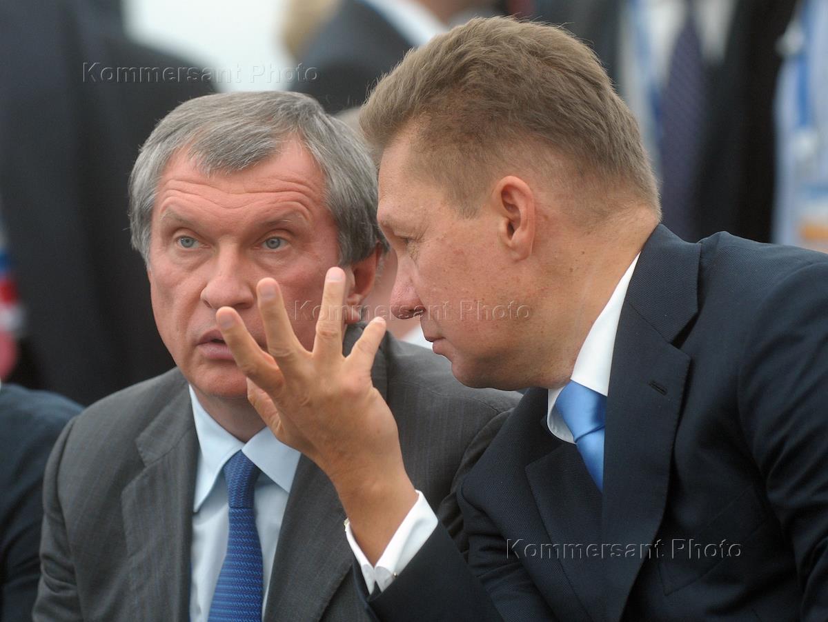 Саммит лидеров стран участниц "Группы двадцати" G20. Президент, председатель правления ОАО "НК "Роснефть" Игорь Сечин (слева) и председатель правления ОАО "Газпром" Алексей Миллер (справа) на церемонии подписания межгосударственных и межправительственных договоров с Китайской Народной Республикой.