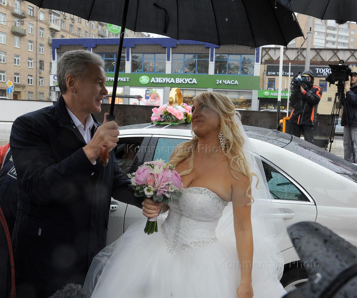 Acting Mayor of Moscow Sergei Sobyanin (left) at the opening of traffic on the road the first stage Halabyan-Baltic tunnel. Congratulations to the newlyweds.