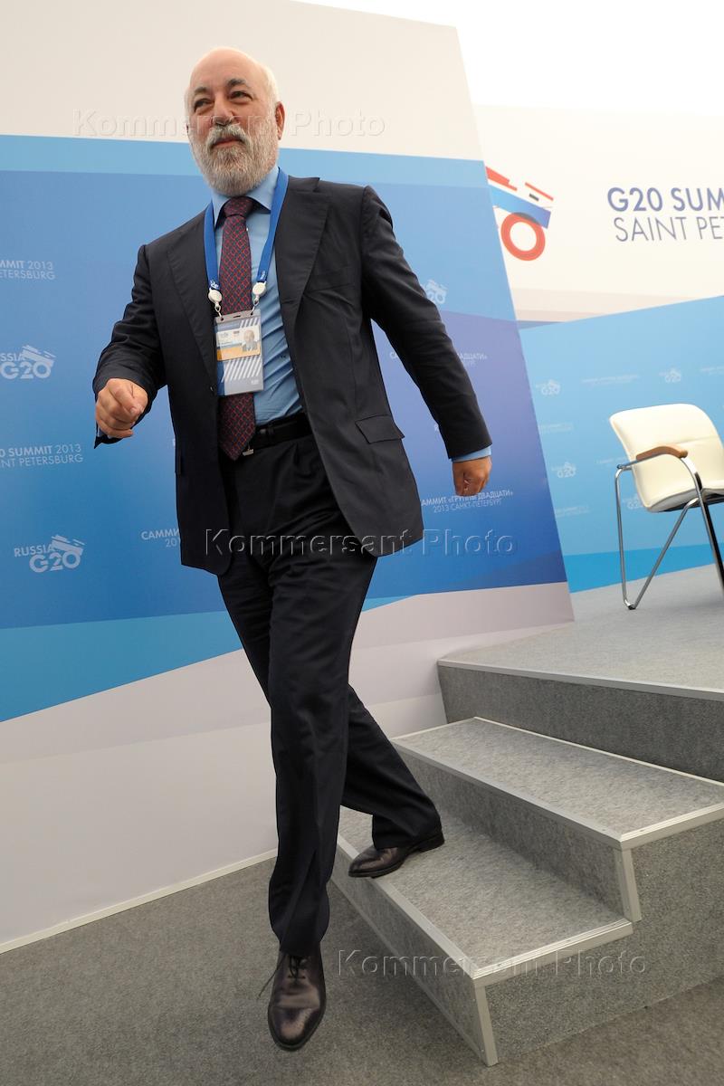 The summit of leaders of the member states "Group of Twenty" G20. General Director of "Severstal" Alexey Mordashov, after a briefing following the meeting of the social partners with the leaders of G20.