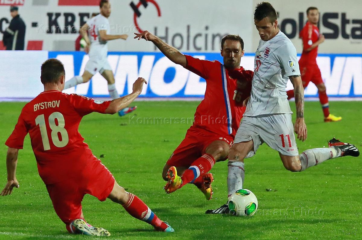 World Cup Qualifiers 2014 on football. The match between national teams of Russia and Luxembourg was held at the Central Stadium.