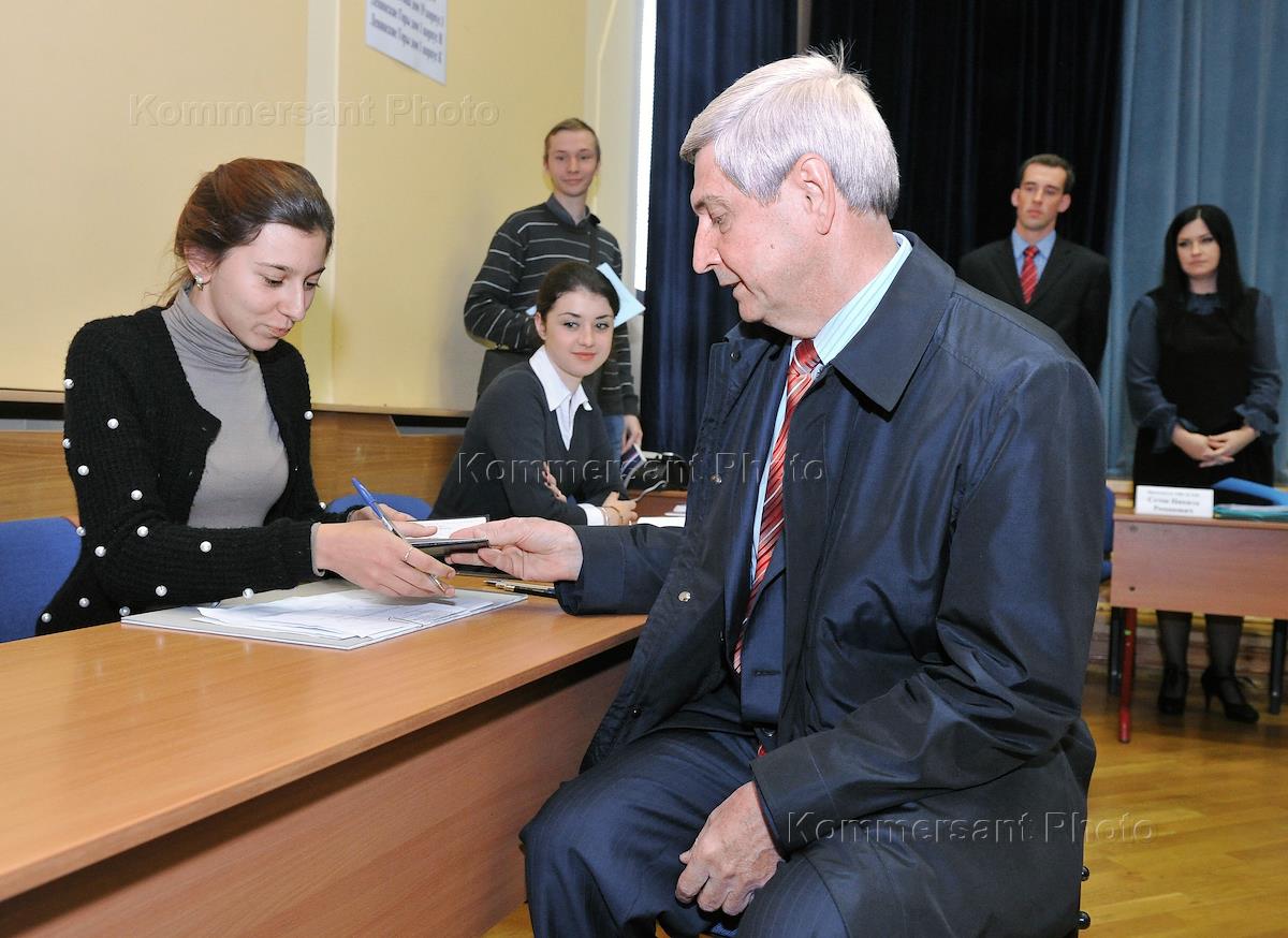 Election of the Mayor of Moscow. Rector of Moscow State University named after Lomonosov Viktor Sadovnichiy voting at a polling station in the school №1448.