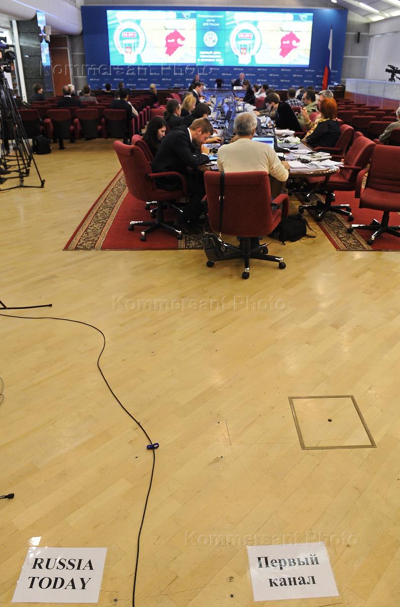 Unified day of voting. Work of Information Center of the Russian Central Election Commission (CEC) during the elections. Deputy Chairman of the CEC Leonid Ivlev (left).