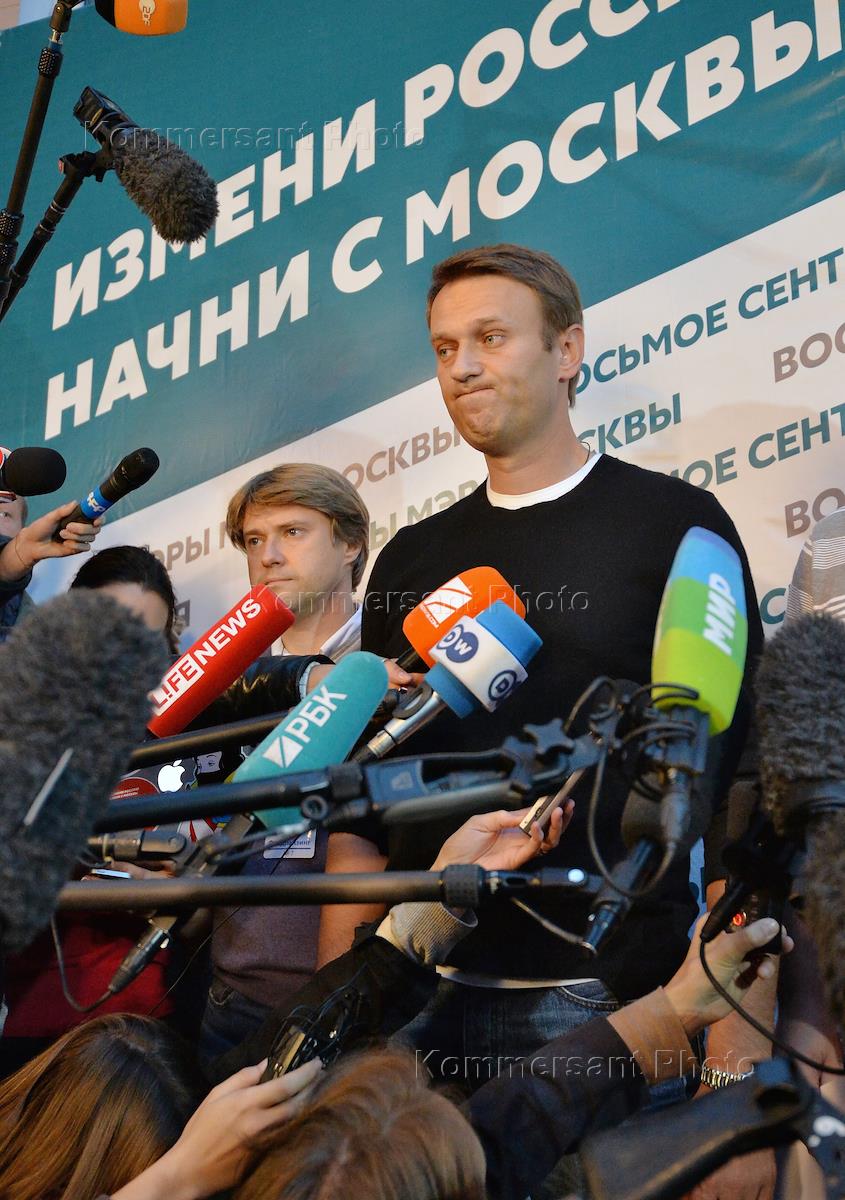 Работа штаба кандидата в мэры Москвы Алексея Навального. Кандидат в мэры Москвы, председатель Координационного совета оппозиции (КСО) Алексей Навальный во время пресс-конференции в штабе.