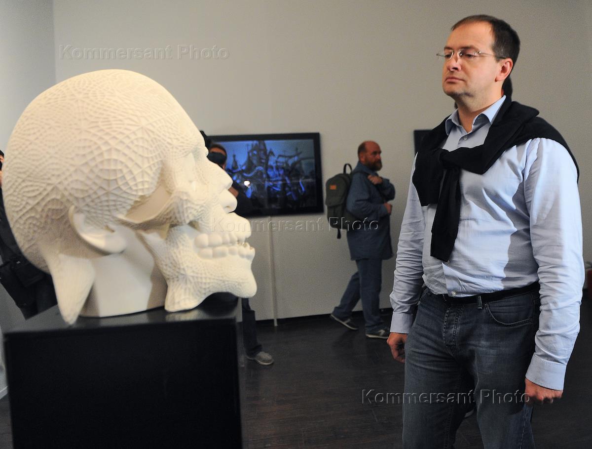 Russian Culture Minister Vladimir Medinsky at the exhibition opening ceremony of the Members Presidium of the Fine Arts Russian Academy in Moscow Modern Art Museum.