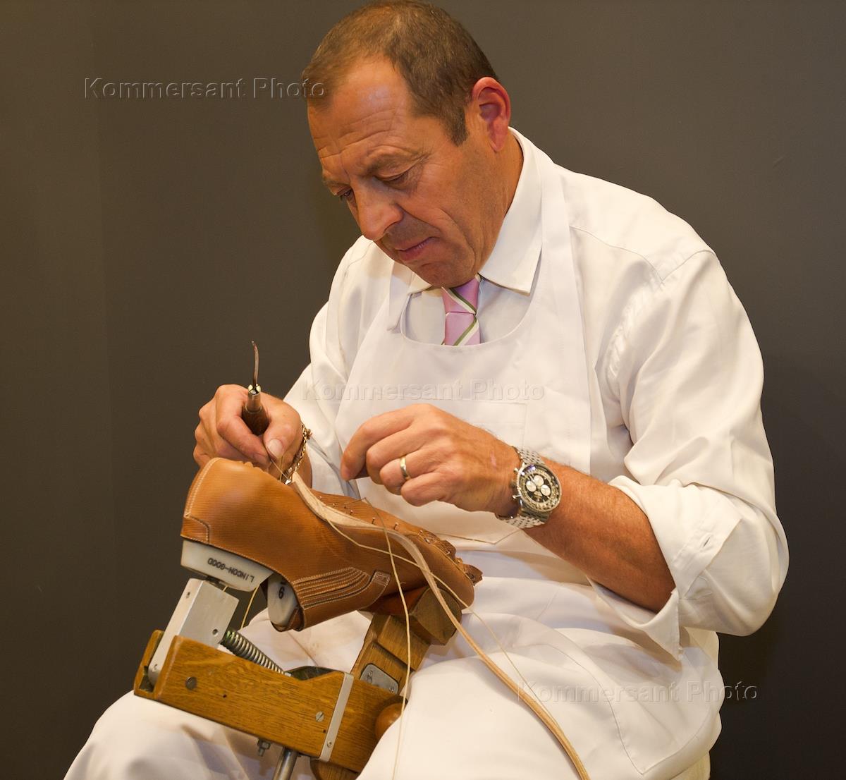 Managing Director Santoni SpA Giuseppe Santoni (left) at the presentation Services Made-to-Measure (sewing shoes to individual measures) by Italian shoe brand Santoni in the Central Department Store.