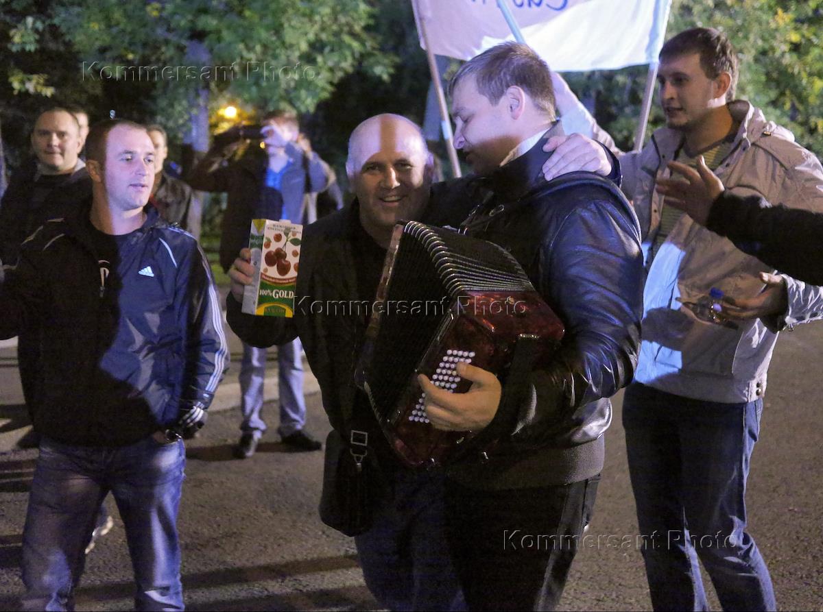 Временно исполняющий обязанности мэра Москвы, кандидат на выборах мэра Москвы Сергей Собянинин (в центре) на митинге в его поддержку на Болотной площади.