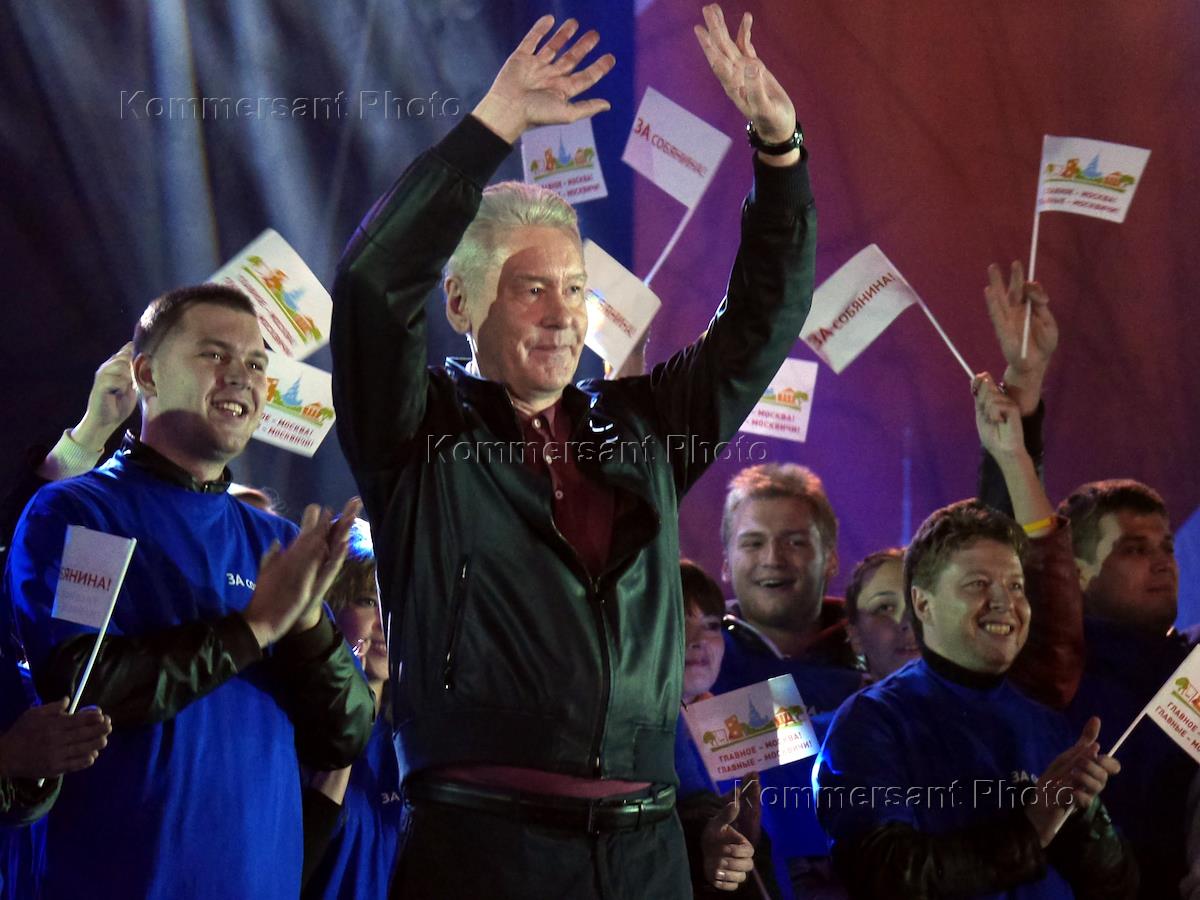 Временно исполняющий обязанности мэра Москвы, кандидат на выборах мэра Москвы Сергей Собянинин на митинге в его поддержку на Болотной площади.