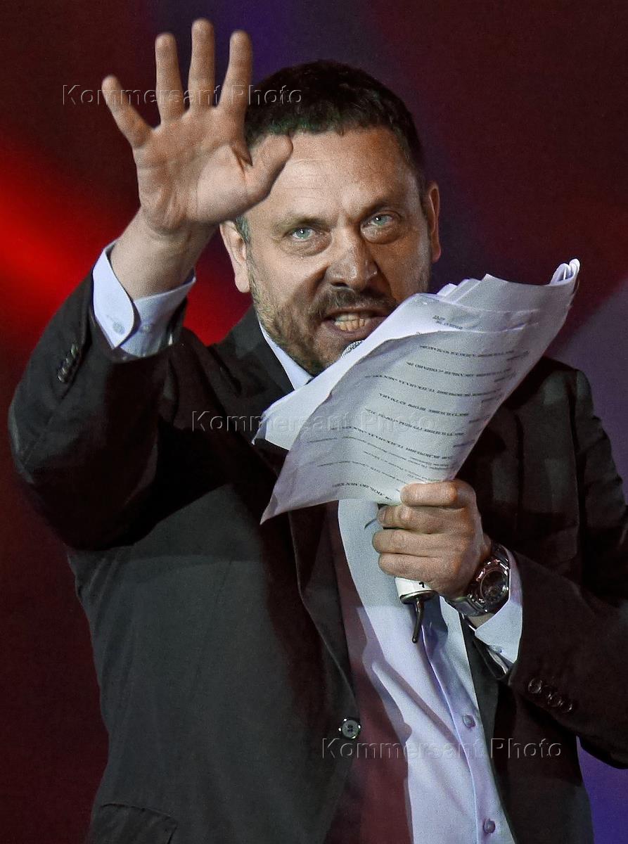 Political analyst Maxim Shevchenko during a speech at the rally in support of a candidate in the election of Moscow mayor Sergei Sobyanin. The rally passed on Bolotnaya Square.