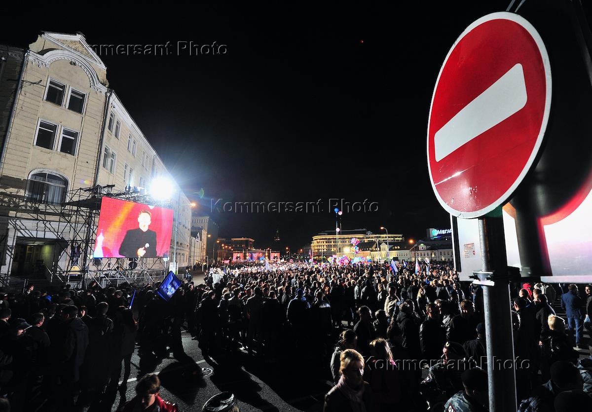Участники митинга в поддержку кандидата на выборах мэра Москвы Сергея Собянинина на Болотной площади.