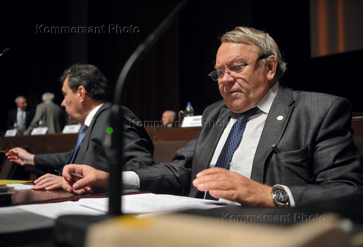 Вице-президент РАН, ректор МГУ имени М.В.Ломоносова Виктор Садовничий (слева) на Общем собрании Российской академии наук в Большом зале Российской академии наук.