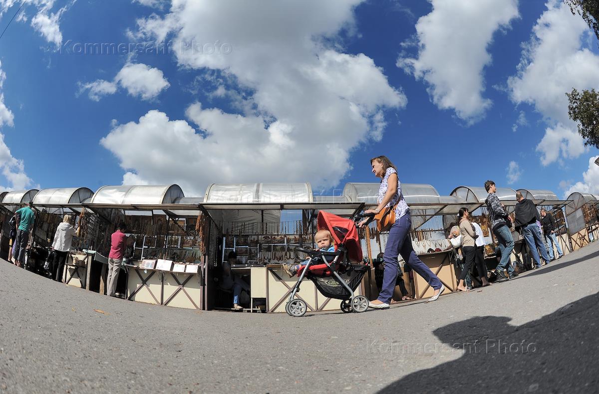 Genre photo. Selling jewelry made of amber in the shopping pavilion.