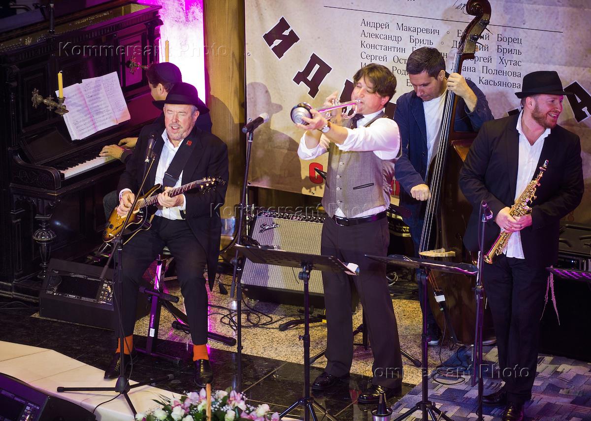 Лидер группы "Машина времени" Андрей Макаревич (второй слева) во время представления своего альбома "Идиш-Джаз" на праздновании Рош-а-Шана (Новый год по еврейскому календарю) в мемориальной синагоге на Поклонной горе.