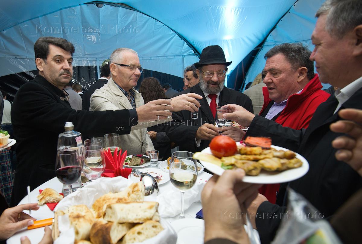 Актриса Анна Азерли (в центре) и бизнесмен из Тулы Исай Пейсахов (справа) на праздновании Рош-а-Шана (Новый год по еврейскому календарю) в мемориальной синагоге на Поклонной горе.