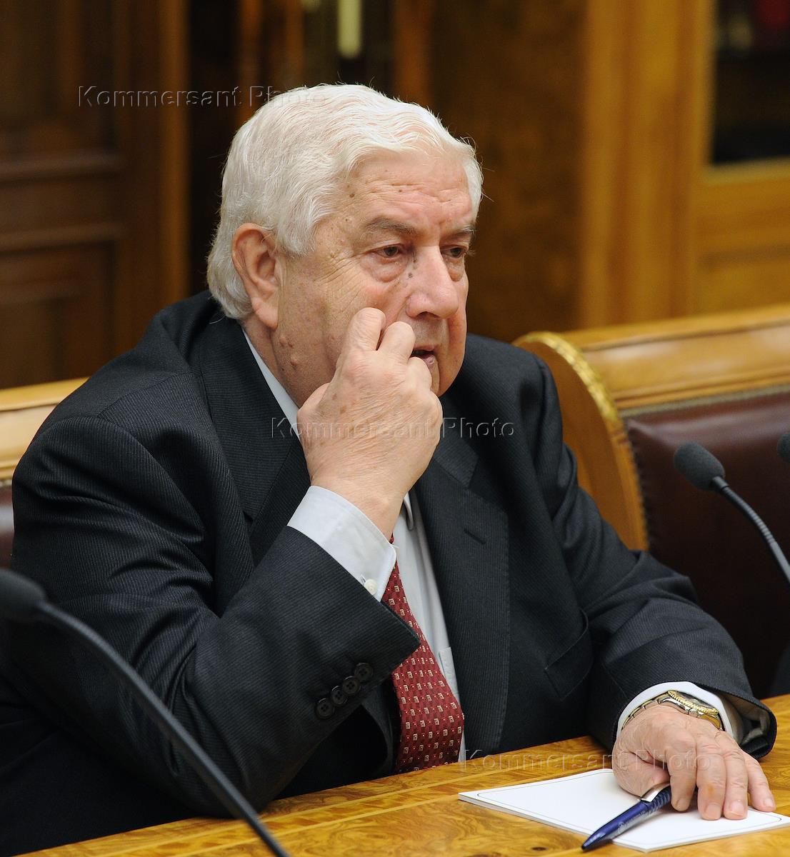 Syrian Foreign Minister Walid Muallem during a meeting with Chairman of the Russian State Duma Sergei Naryshkin in the State Duma.