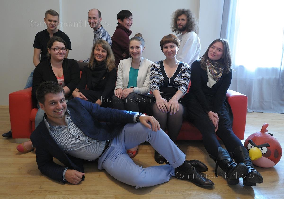 Founder and director of an advertising agency of viral video "Smetana" Andrei Buzin (center) with the staff of the agency.