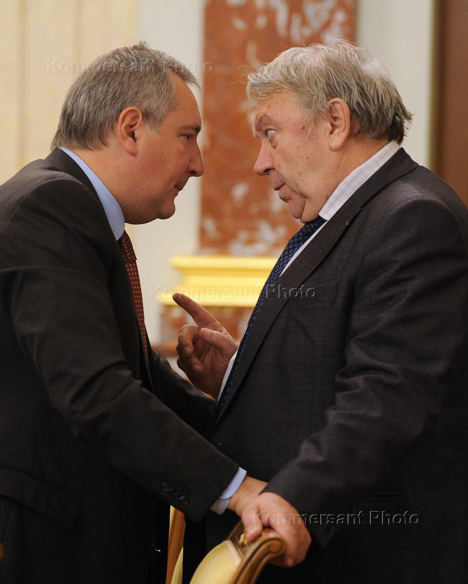 Deputy Prime Minister Dmitry Rogozin (left) and President of the Russian Academy of Sciences (RAS) Vladimir Fortov (right) before a meeting of the Russian government.