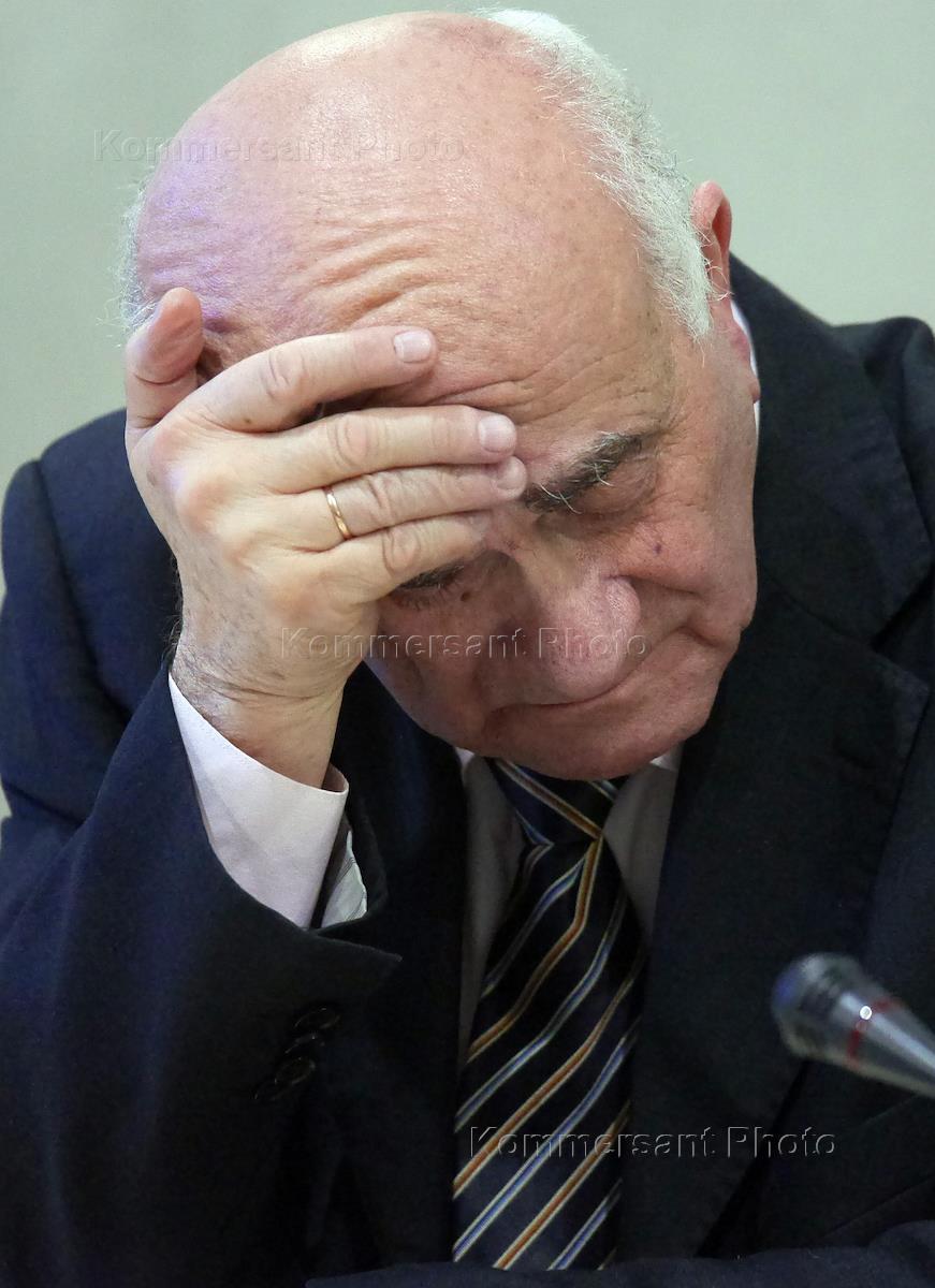 Signing of the cooperation agreement between the Russian Public Chamber with the Open Government on the establishment of a working group to develop common standards for formation and coordination of public councils at the federal bodies of executive power. Scientific director of the State University "Higher School of Economics" Yevgeny Yasin during the signing in the Russian Public Chamber.