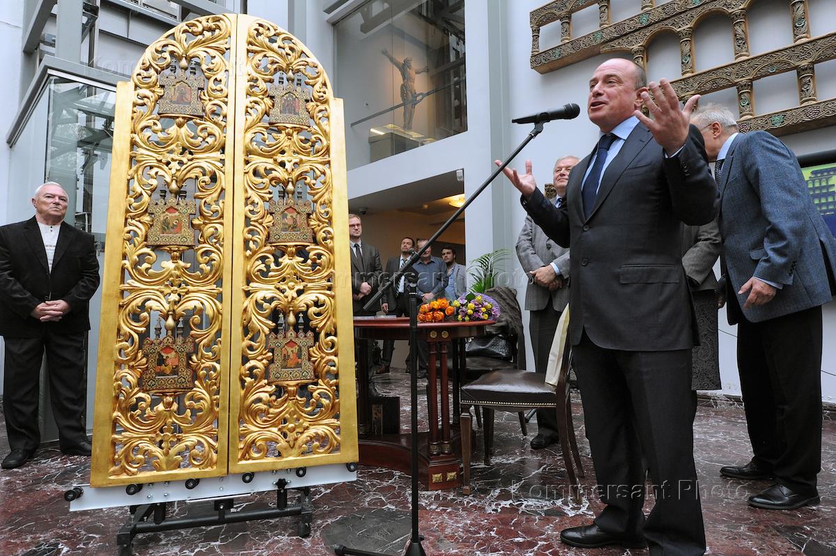 Основатель Музея русской иконы Михаил Абрамов на церемонии открытия выставки "Дымковские праздники. Иконы церкви Димитрия Солунского в Великом Устюге" в Музее русской иконы.