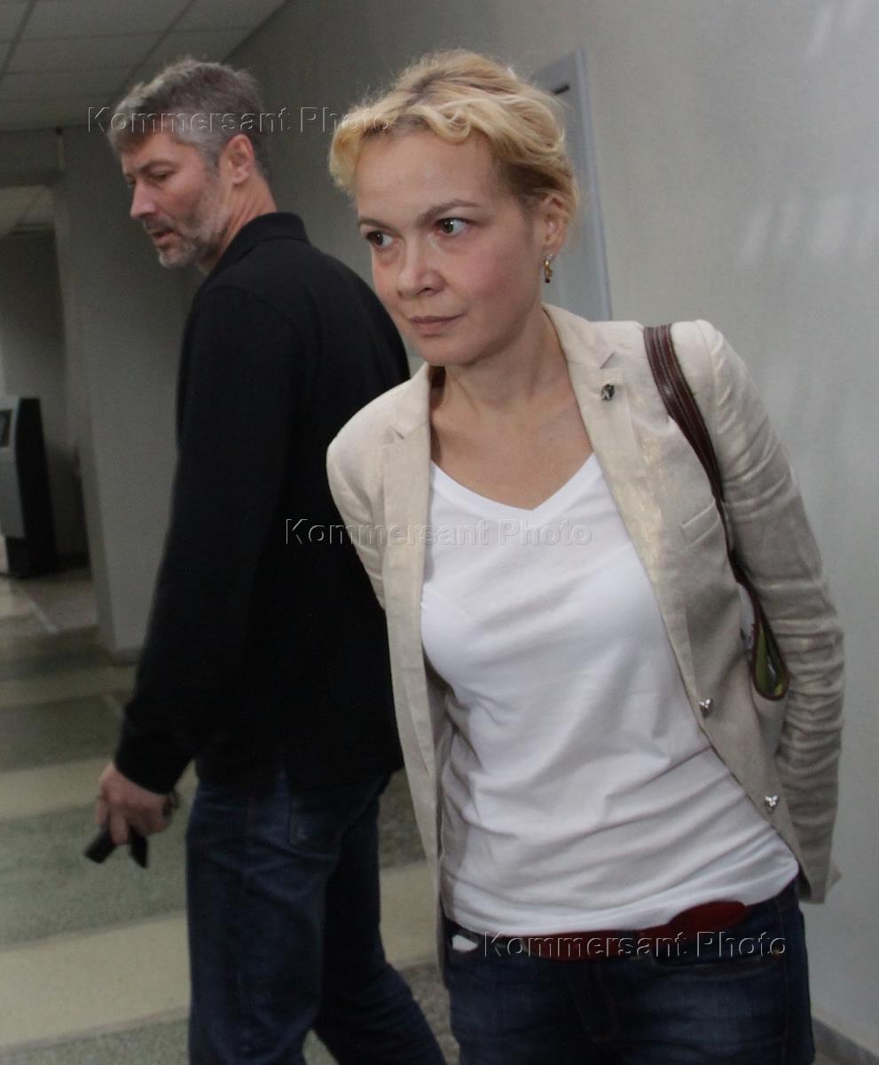 Former chief editor of the news agency "Ura.ru" Aksana Panova (right), accused of fraud, extortion and abuse of power, and Mayor of Yekaterinburg Yevgeny Roizman (left) before the court hearing in the Leninsky district court of Yekaterinburg.