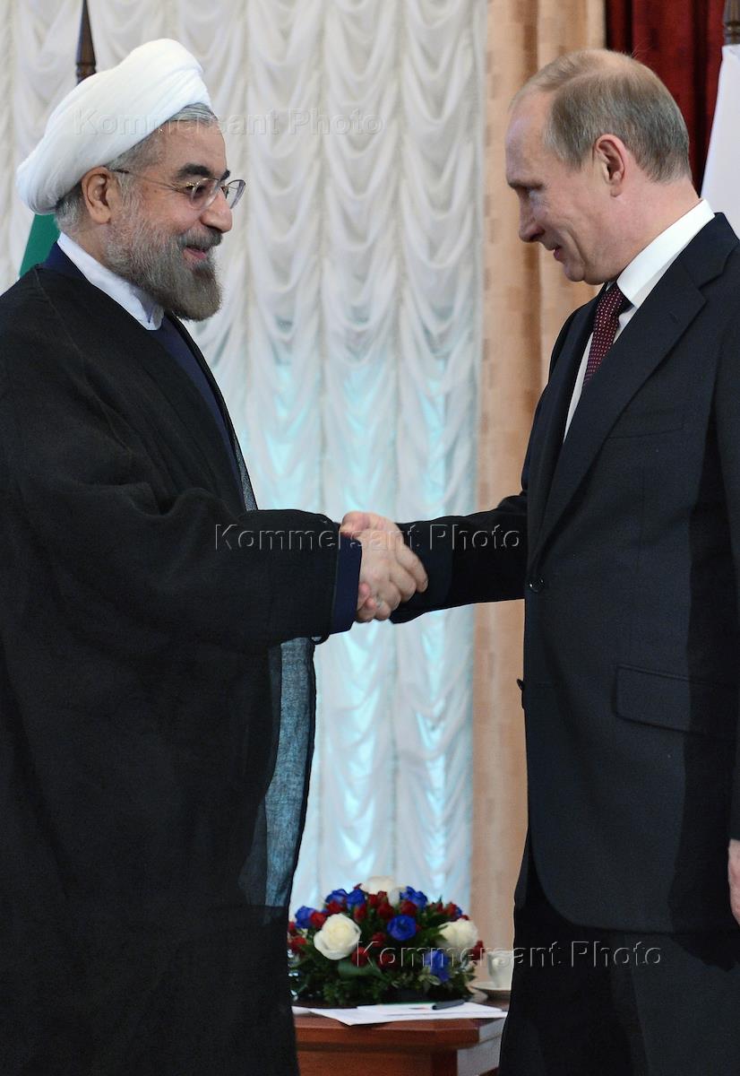 Рабочая поездка президента России Владимира Путина в Киргизию. Президент Ирана Хасан Рухани во время всречи с президентом России Владимиром Путиным.