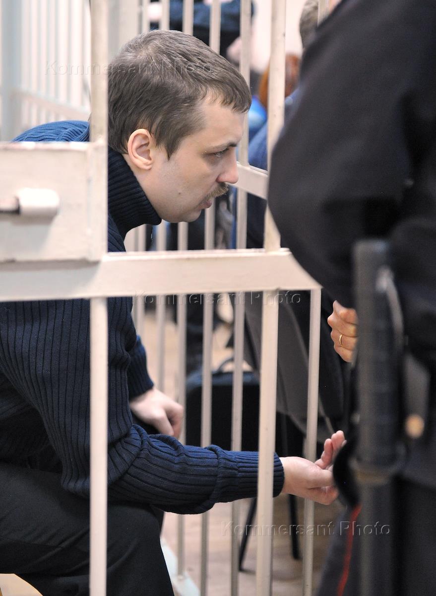 Accused of participation in mass disorders on Bolotnaya Square May 6, 2012 Mikhail Kosenko (right) during a meeting of the Zamoskvoretskii district court.