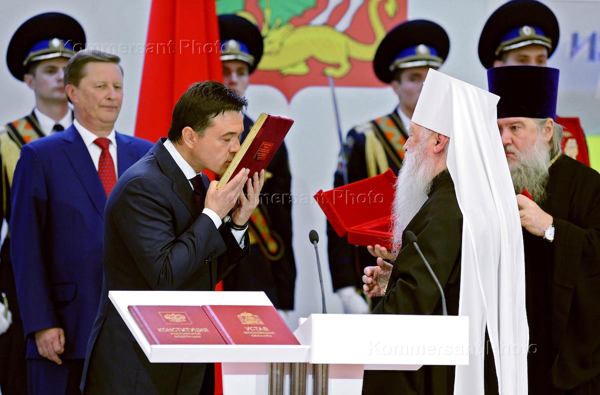Elected governor of the Moscow region Andrei Vorobyov in the solemn inauguration ceremony in the reception hall of the Moscow region Government House.