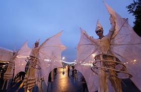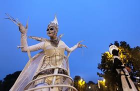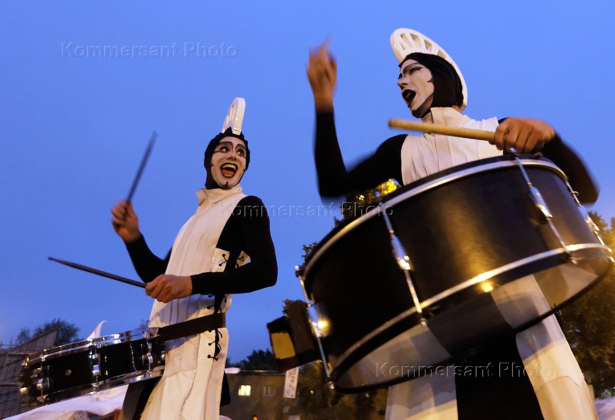 Выступление уличного театра из Голландии Close-Act на территории Центрального парка культуры и отдыха имени Горького.