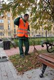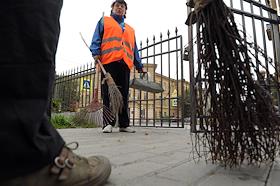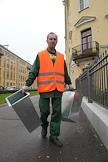 Дворник ЖЭС-2 города Кронштадт во время работы.