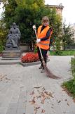 Дворник ЖЭС-2 города Кронштадт Татьяна Ганичева во время работы.