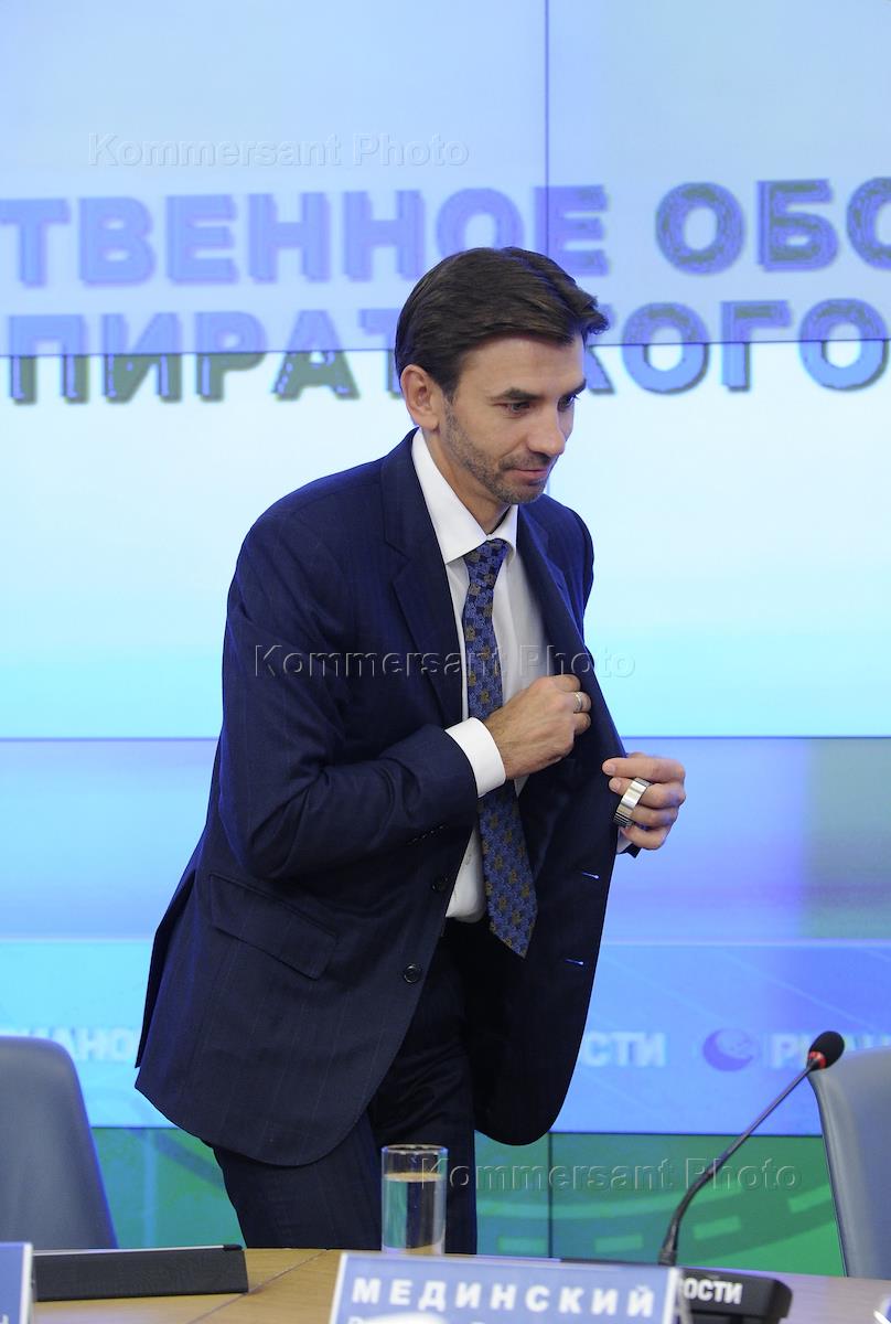 Министр культуры России Владимир Мединский во время заседания "круглого стола" на тему "Общественное обсуждение "антипиратского закона". Заседание прошло в РИА "Новости".
