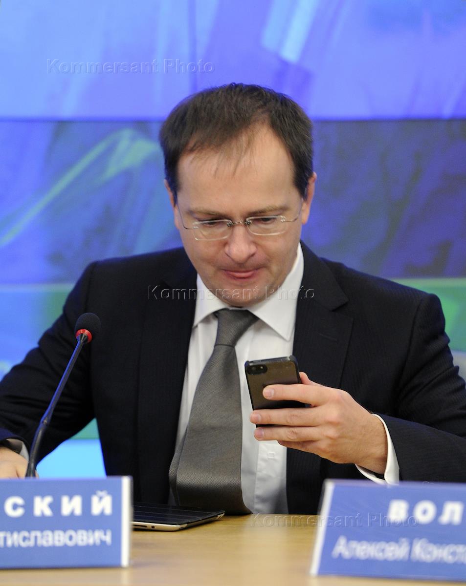 Министр культуры России Владимир Мединский во время заседания "круглого стола" на тему "Общественное обсуждение "антипиратского закона". Заседание прошло в РИА "Новости".