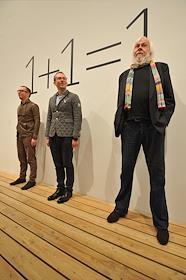 Американский художник-концептуалист Джон Балдессари (справа) на пресс-показе своей выставки "1+1=1" в Центре современной культуры (ЦСК) "Гараж".