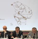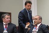 Международный ювелирный экономический форум. Слева направо: руководитель Пробирной палаты России Александр Маркин, заместитель председателя комитета Государственной думы России по экономической политике, инновационному развитию и предпринимательству Виктор Звагельский, президент Ассоциации Банков Центральной России Гарегин Тосунян в Конгресс-центре Торгово-промышленной палаты России.