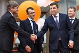 Слева направо: заместитель министра образования и науки России Александр Климов, губернатор Свердловской области Евгений Куйвашев и генеральный директор УГМК-Холдинга Андрей Козицын на церемонии открытия Технического университета Уральской горно-металлургической компании (УГМК).