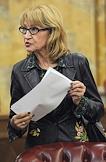 Министр правительства Москвы, руководитель Департамента финансов города Москвы Вера Чистова перед началом заседания правительства Москвы.