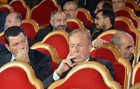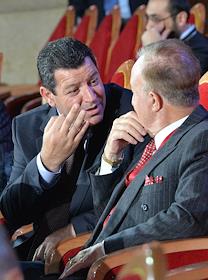 Президент Союза Армян России Ара Абрамян (слева) перед началом концерта по случаю открытия Храмого комплекса Армянской апостольской церкви в Москве. Концерт прошел в храме Христа Спасителя.