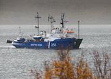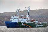 Ледокол экологической организацией Гринпис Arctic Sunrise, захваченный пограничниками ФСБ во время акции против добычи нефти на арктическом шельфе, буксируют к порту Мурманска.