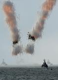 Президент России Владимир Путин (второй слева) и президент Белоруссии Александр Лукашенко (третий справа) во время завершающего этапа российско-белорусских стратегических учений "Запад-2013". Учения прошли на полигоне Хмелевка в Калининградской области.
