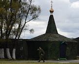 Храм-палатка - походное место для проведения православных служб на Балтийском флоте на полигоне "Хмелевка" в Калининградской области.