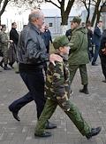 Президент Белоруссии Александр Лукашенко (слева) с сыном Николаем (справа) во время завершающего этапа российско-белорусских стратегических учений "Запад-2013". Учения прошли на полигоне Хмелевка в Калининградской области.