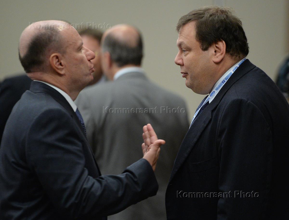 XII Международный инвестиционный форум "Сочи-2013". Президент нефтяной компании "ЛУКойл" Вагит Алекперов (слева) и заместитель председателя правительства России Дмитрий Козак (справа) во время работы форума.