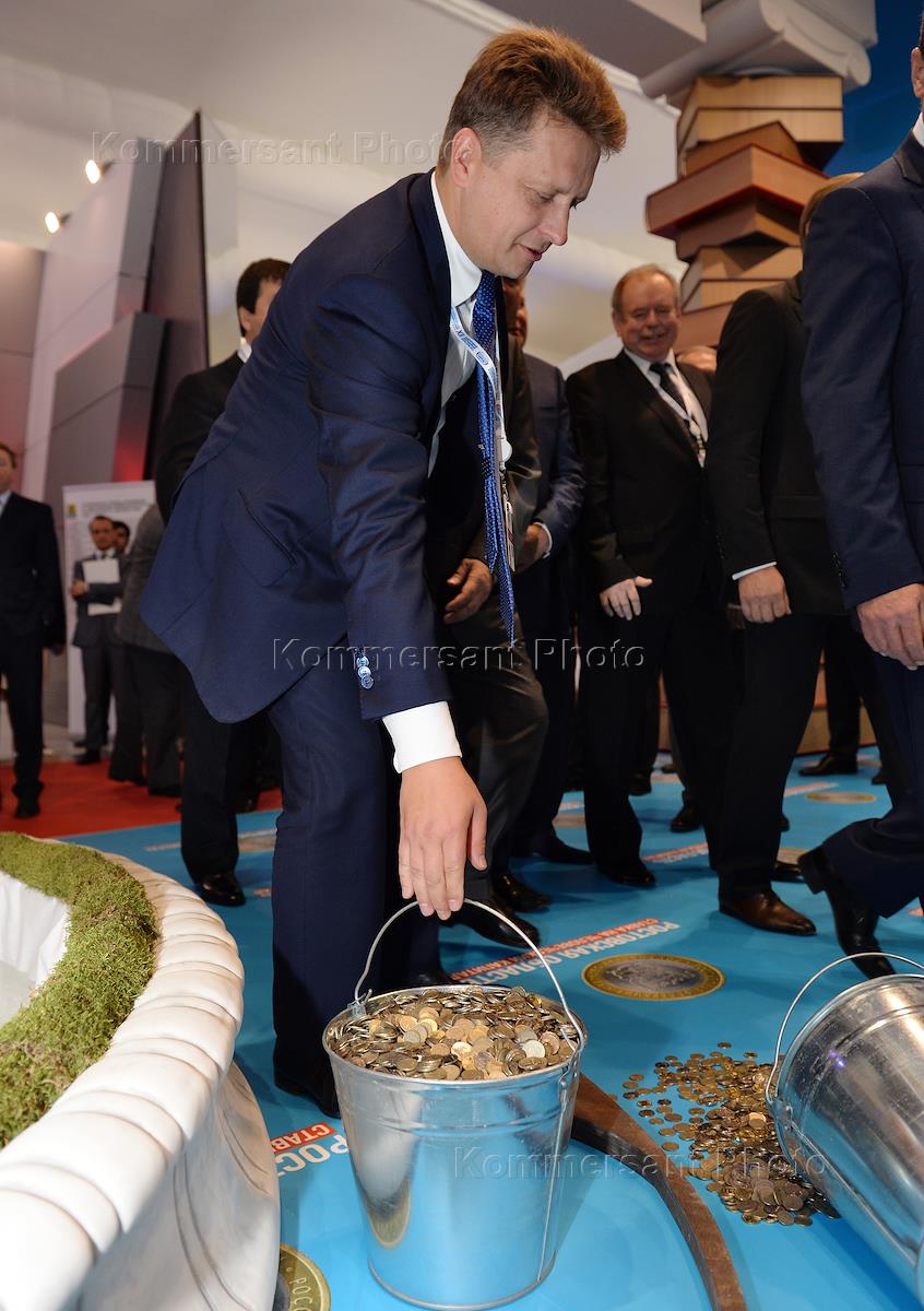 XII International Investment Forum "Sochi-2013". Bucket with coins on a stand Rostov region on the forum.