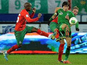 СОГАЗ-Чемпионат России по футболу 2013/2014. 11-й тур. Матч между командами "Локомотив"(Москва) и "Томь" (Томск) прошел на стадионе "Локомотив". Игрок команды "Локомотив" Диарра Лассана (слева) во время матча.